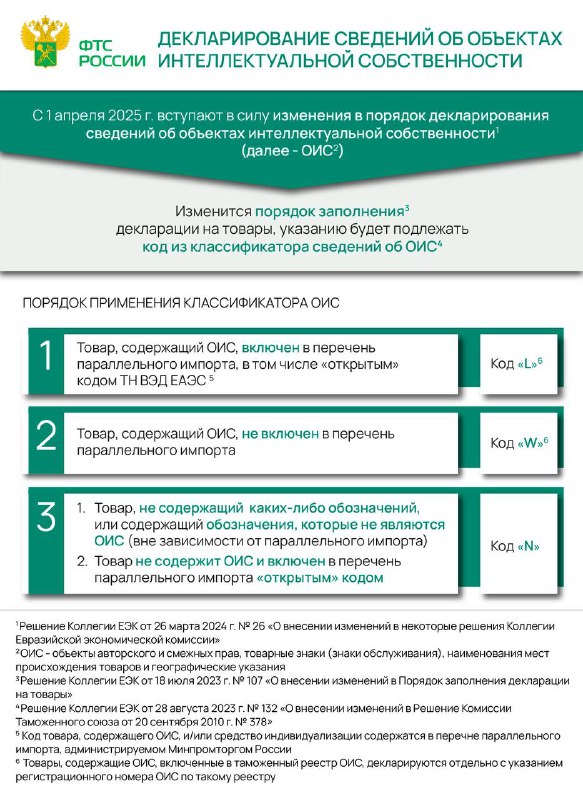 С 1 апреля 2025 года изменился порядок декларирования товаров, содержащих ОИС
