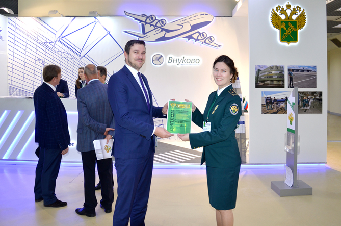 На стенде межведомственное электронное взаимодействие при прибытии товаров в аэропорт Внуково было продемонстрировано заместителю руководителя Федеральной таможенной службы Александру Николаевичу Попову, а в конце первого дня работы выставки стенд посетил руководитель ФТС России Владимир Иванович Булавин.