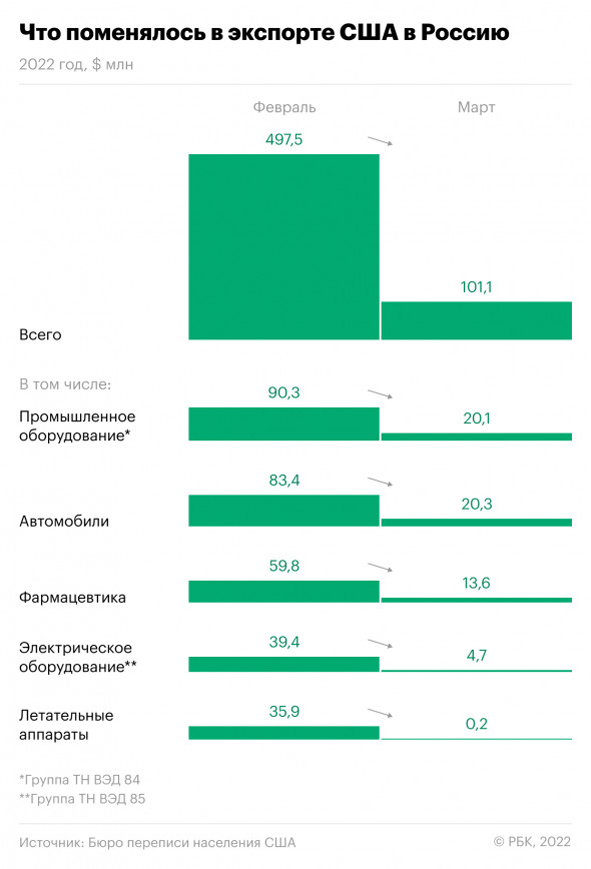 ЕС заморозил почти половину золотовалютных резервов ЦБ, а также запретил импорт угля из России. США запретили импорт российских энергоносителей, в том числе сырую нефть.