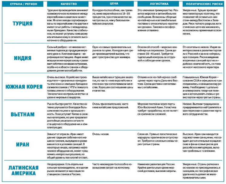 Крупнейшие российские компании - лидеры нефтегазовой, металлургической и обрабатывающей отраслей - оказались перед выбором: искать обходные пути для поддержания работы критически важного импортного оборудования или ускоренно искать замену. На этом фоне взрывной рост параллельного импорта открыл возможности для одних и создал серьезные риски для других. Проанализируем перспективные рынки-альтернативы, оценив их по четырем критически важным критериям: качество, цена, логистика и политические риски.