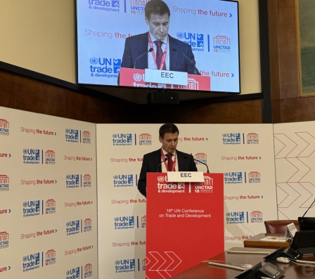 Об этом министр по торговле Евразийской экономической комиссии Андрей Слепнев заявил, выступая в ходе общих прений на шестнадцатой сессии Конференции ООН по торговле и развитию (ЮНКТАД) в Женеве (Швейцария).